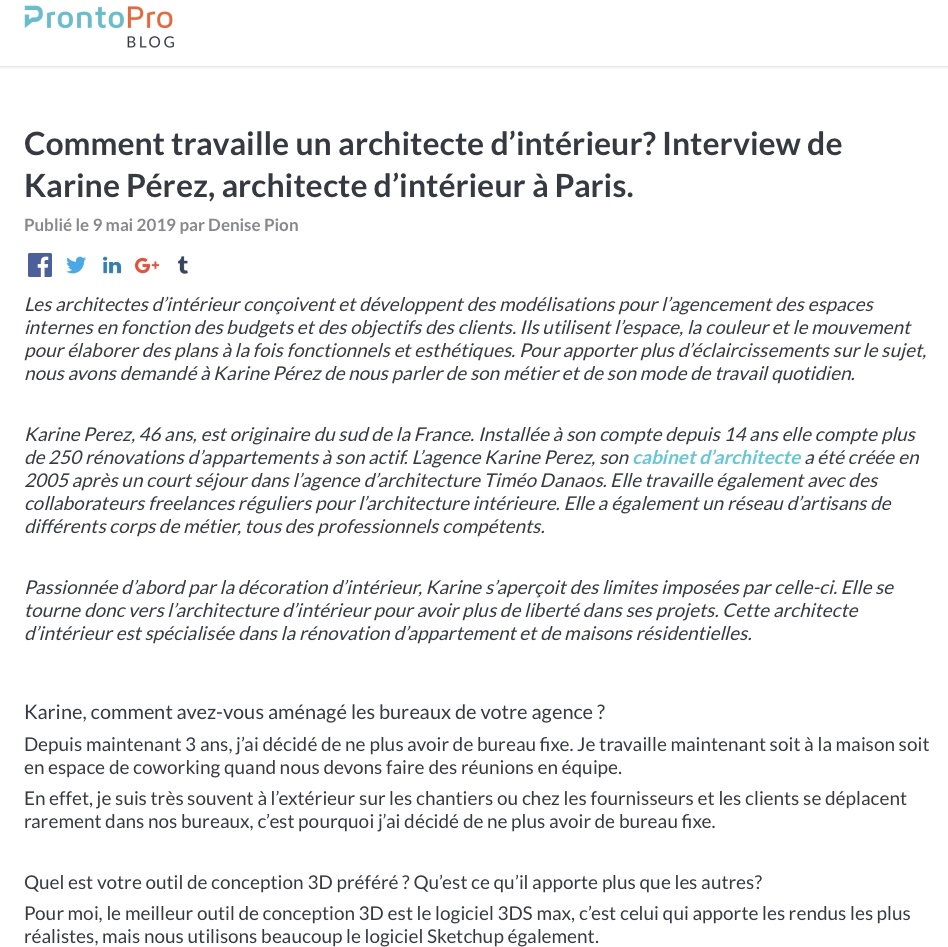 Alors, si vous êtes à la recherche d’un expert en design et d’un spécialiste de l’architecture d’intérieur en ligne pour vous accompagner dans la réalisation de votre projet de décoration d’intérieur ou d’architecture intérieure, n’hésitez pas à contacter Karine Perez dès maintenant.